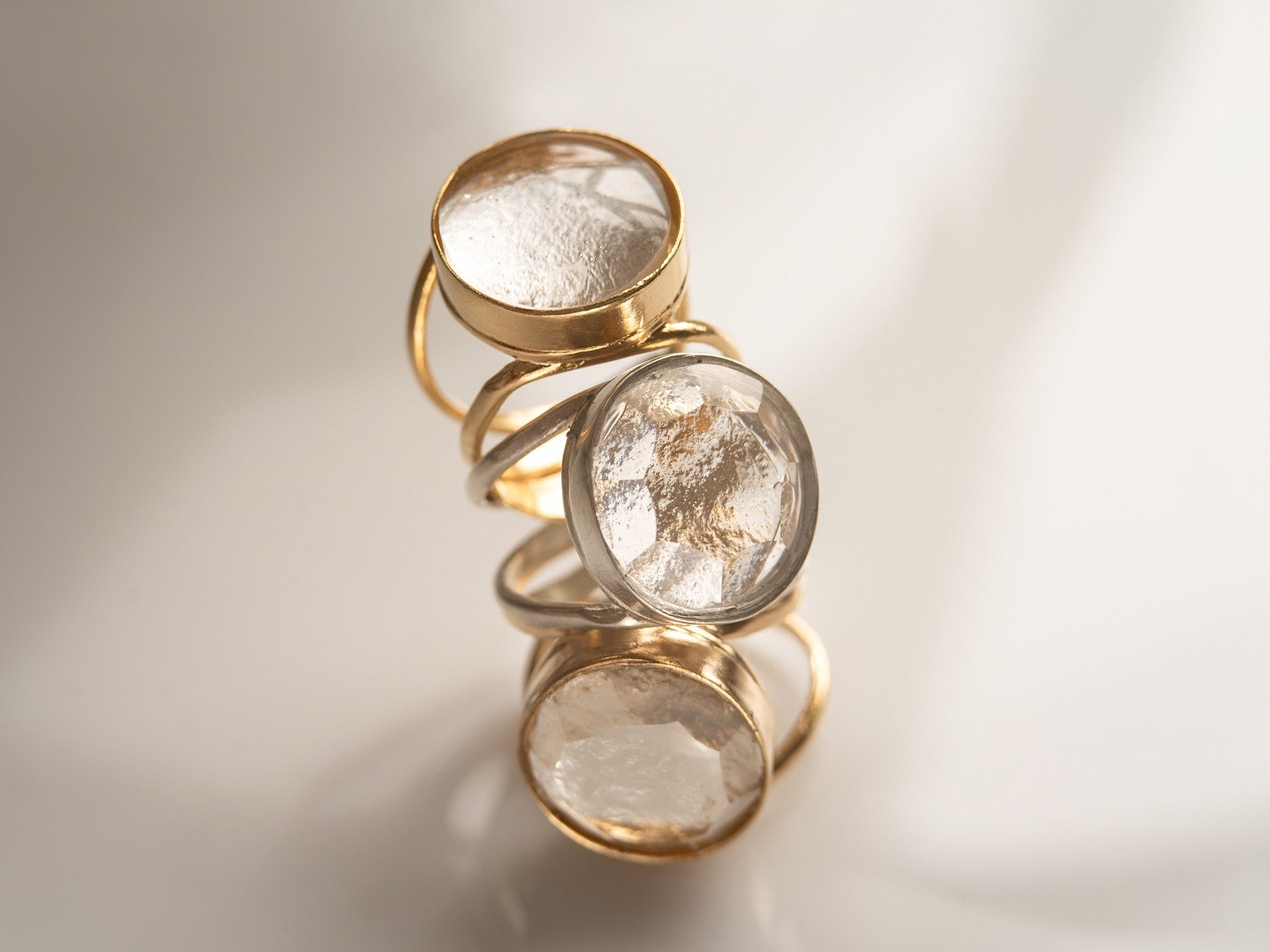Glass and gold-plated silver jewelry.