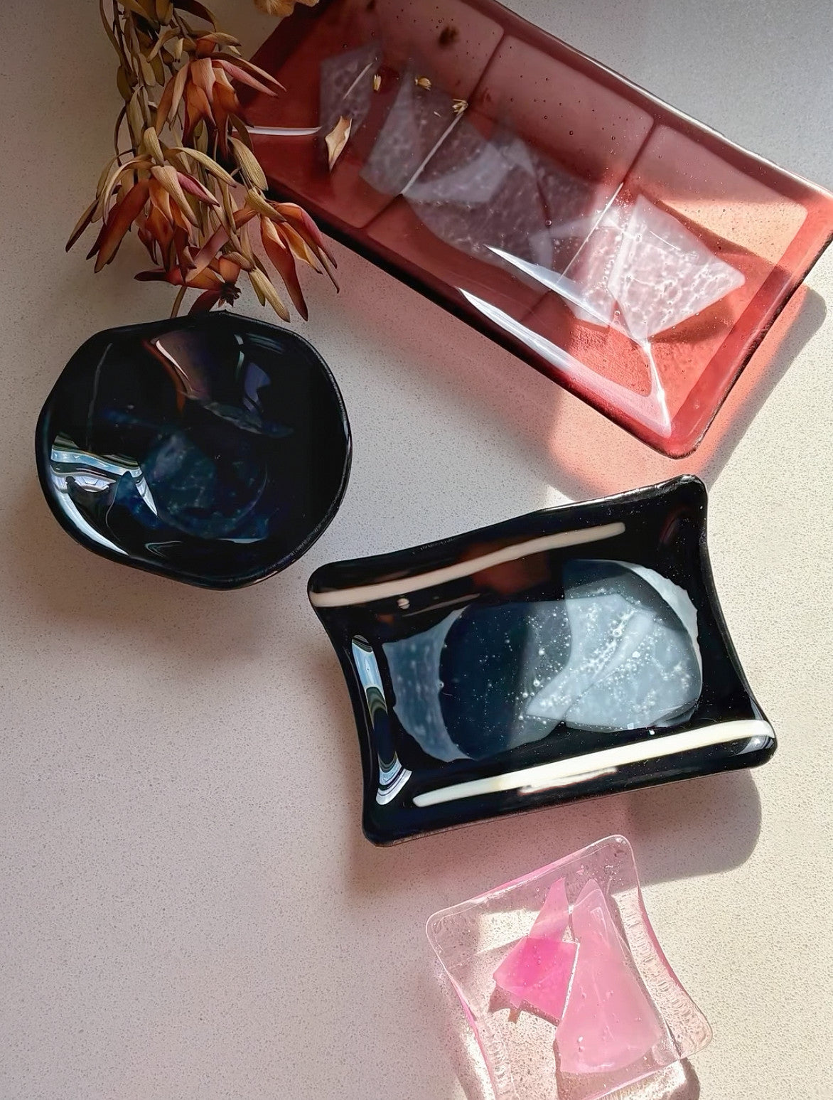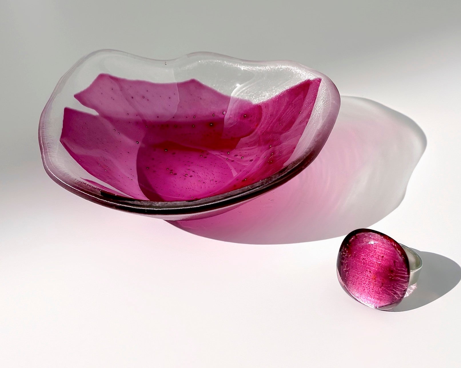Glass and silver jewelry inspired by petals.
